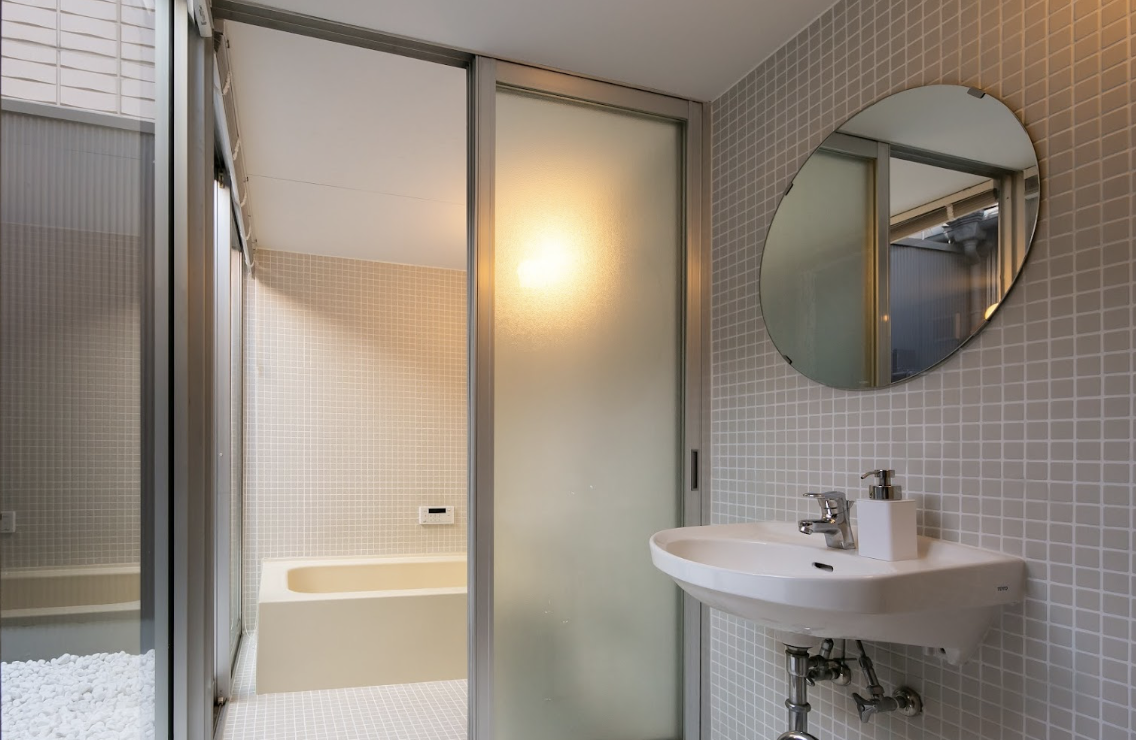 白い石庭に差し込む自然光がやわらかく反射し、浴室やリビングに穏やかな明るさをもたらします。シンプルで洗練された佇まいが心を解きほぐし、“都市の中のやすらぎ”を感じられる場所です。