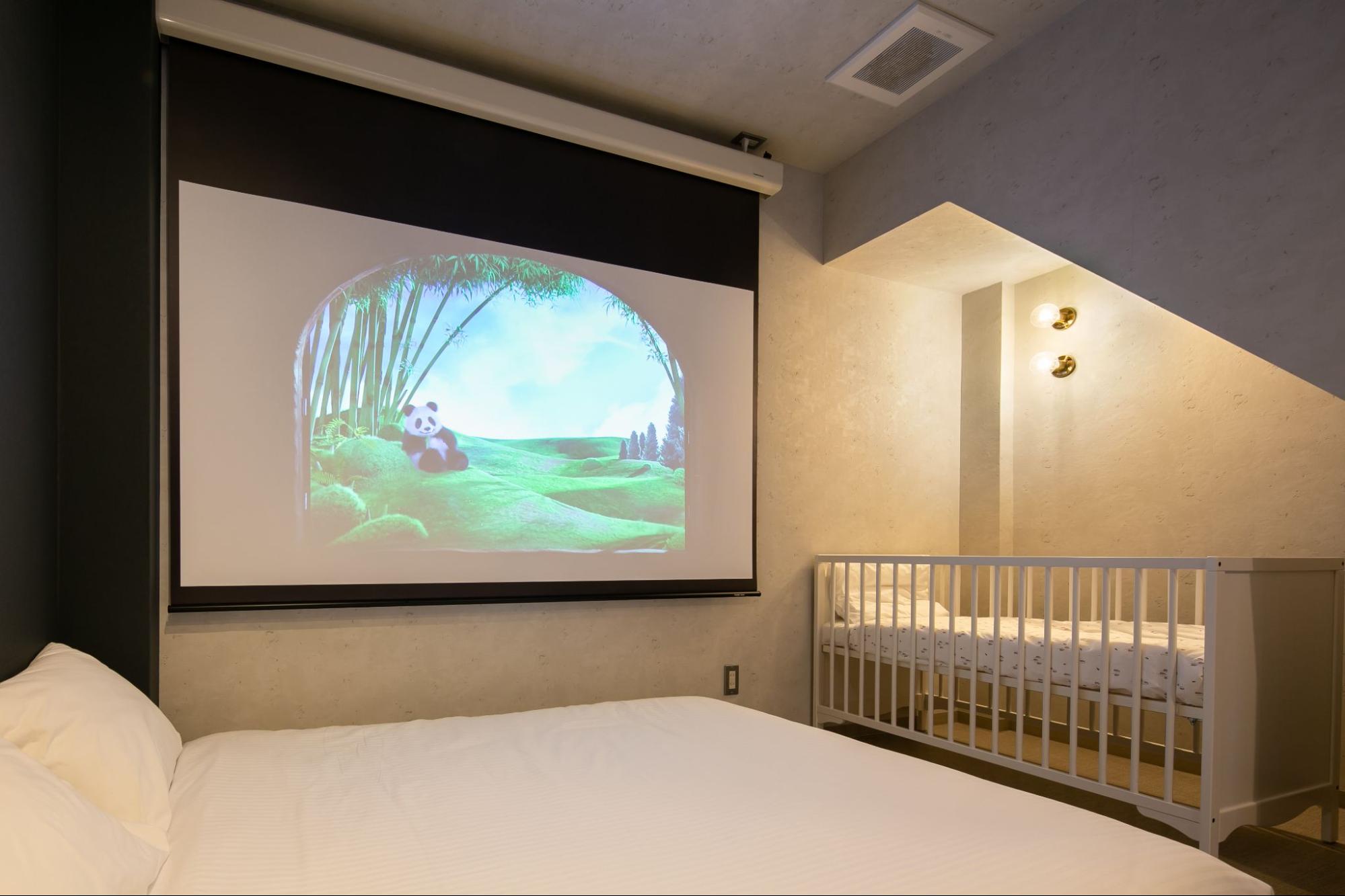 2階の寝室には大型スクリーンも備えており、夜は家族みんなで映画を観たり、こどもたちの大好きなアニメを楽しんだりと、特別なひとときが過ごせます。