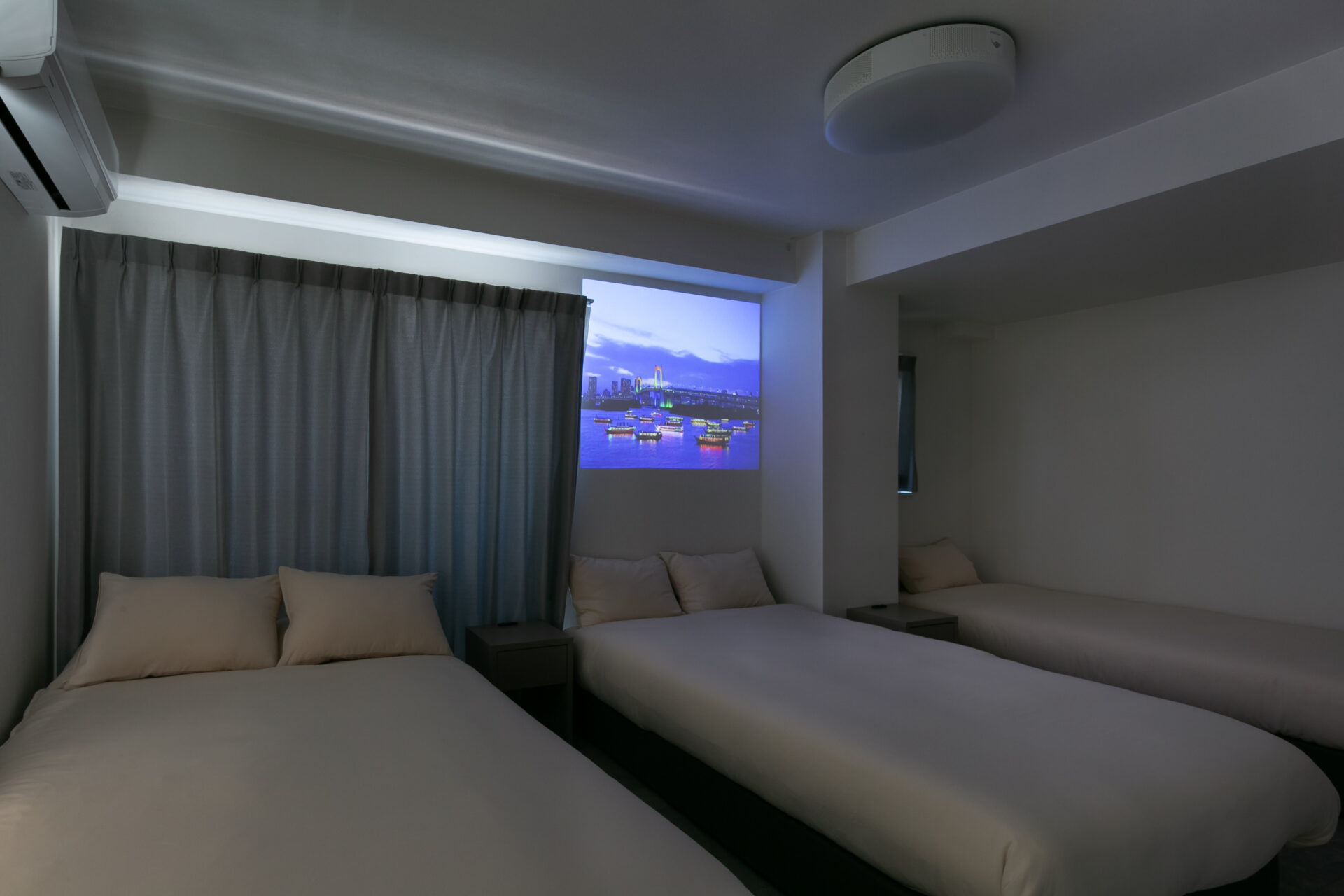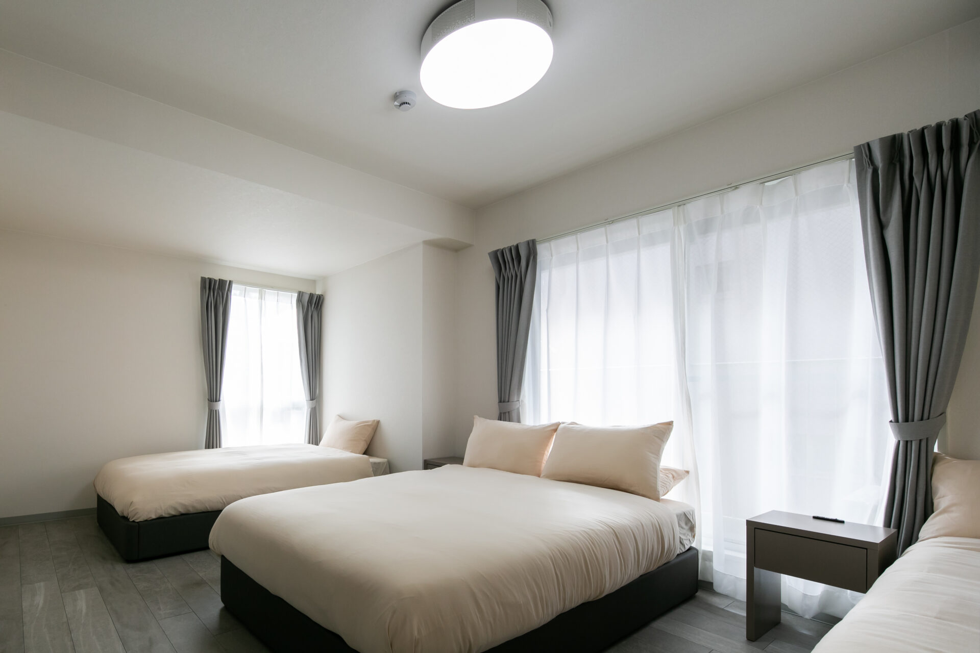 客室は、ビジネスホテルや一般的なシティホテルよりもはるかに広い「約42㎡」のゆとりある空間を確保しています(01号室:42.10㎡ / 02号室:41.82㎡)。 寝室とリビングがしっかりと分かれた1DK設計となっており、最大5名様までのご宿泊が可能。家族旅行やグループ滞在でも、一人ひとりがストレスなくくつろげます。